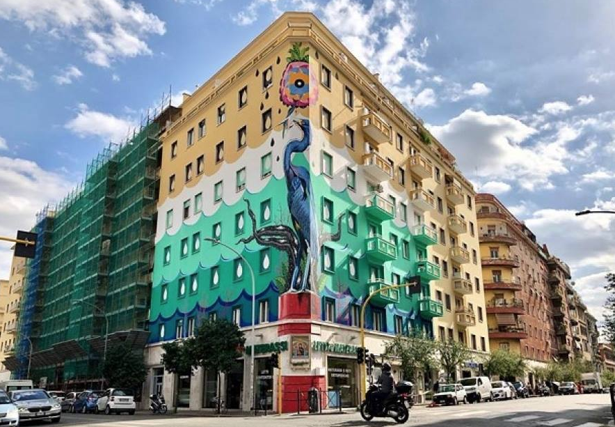 L’anno scorso, 21 artisti di strada hanno utilizzato questa vernice per creare il primo murale europeo che consuma inquinamento, che si estende su 100 mq di un edificio di sette piani a Roma.